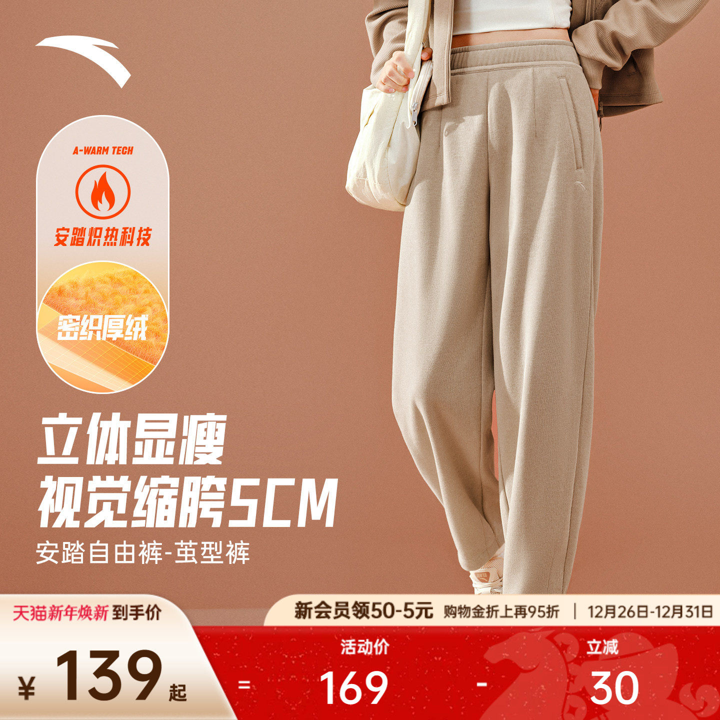 安踏自由裤丨茧型裤休闲运动长裤女裤冬季新款加绒宽松休闲卫裤子