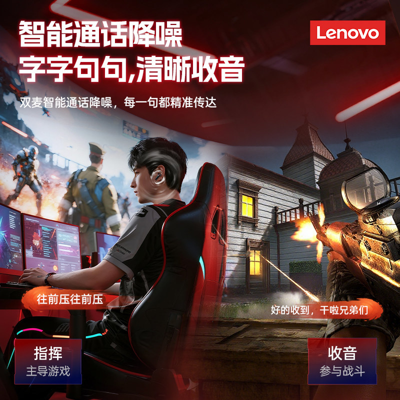 联想蓝牙耳机半入耳式无线2026新款吃鸡电竞级游戏专用超长续航