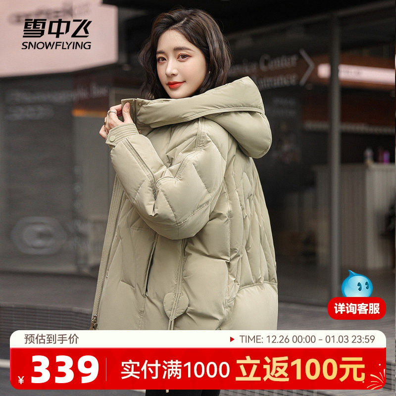 雪中飞2025秋冬热销女式短款连帽羽绒服简约爱心时尚中年妈妈外套