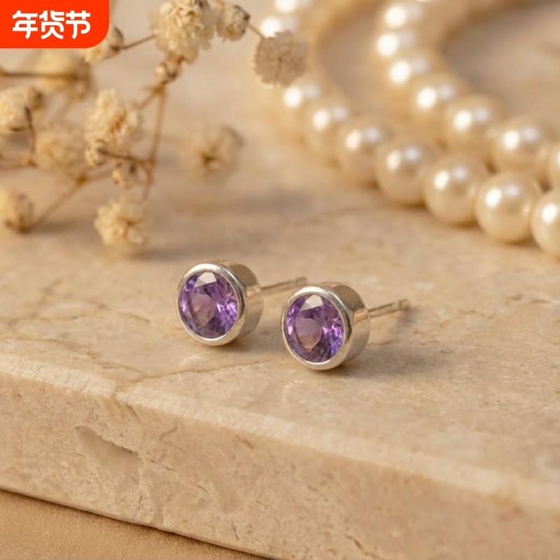 925银针天然紫水晶耳钉女简约百搭高级感送礼饰品
