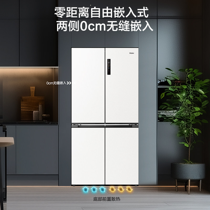 以旧换新补贴海尔485山茶花法式双开薄零嵌入式冰箱家用一级官方