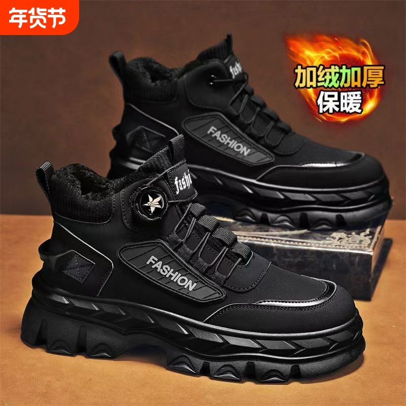 意尔康男鞋秋冬季2025新款加绒棉爆款高帮皮面板鞋男士马丁靴大码