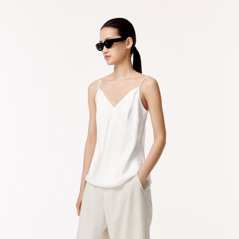 LESS夏季休闲垂感V领斜裁上衣女气质桑蚕真丝吊带小背心2O5013110