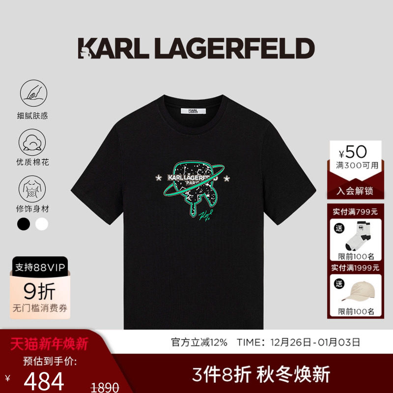 KARL LAGERFELD夏季新款刺绣【棉】短袖T恤老佛爷轻奢男士上衣
