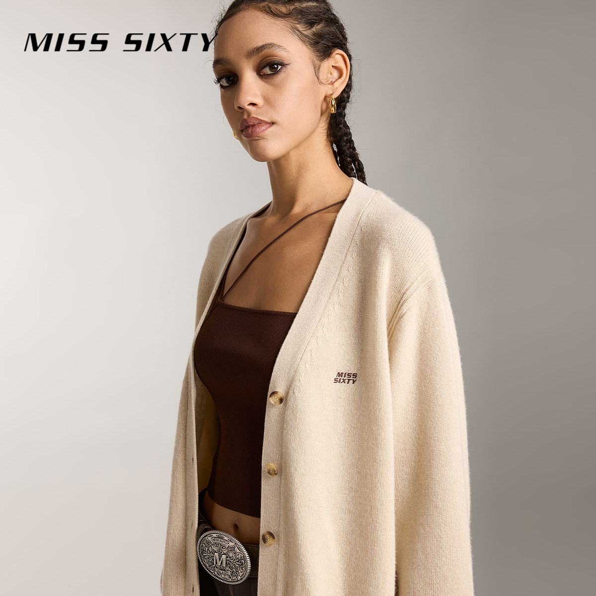 【保暖羊毛羊绒】Miss Sixty针织衫外套刺绣上衣开衫高智感毛衣