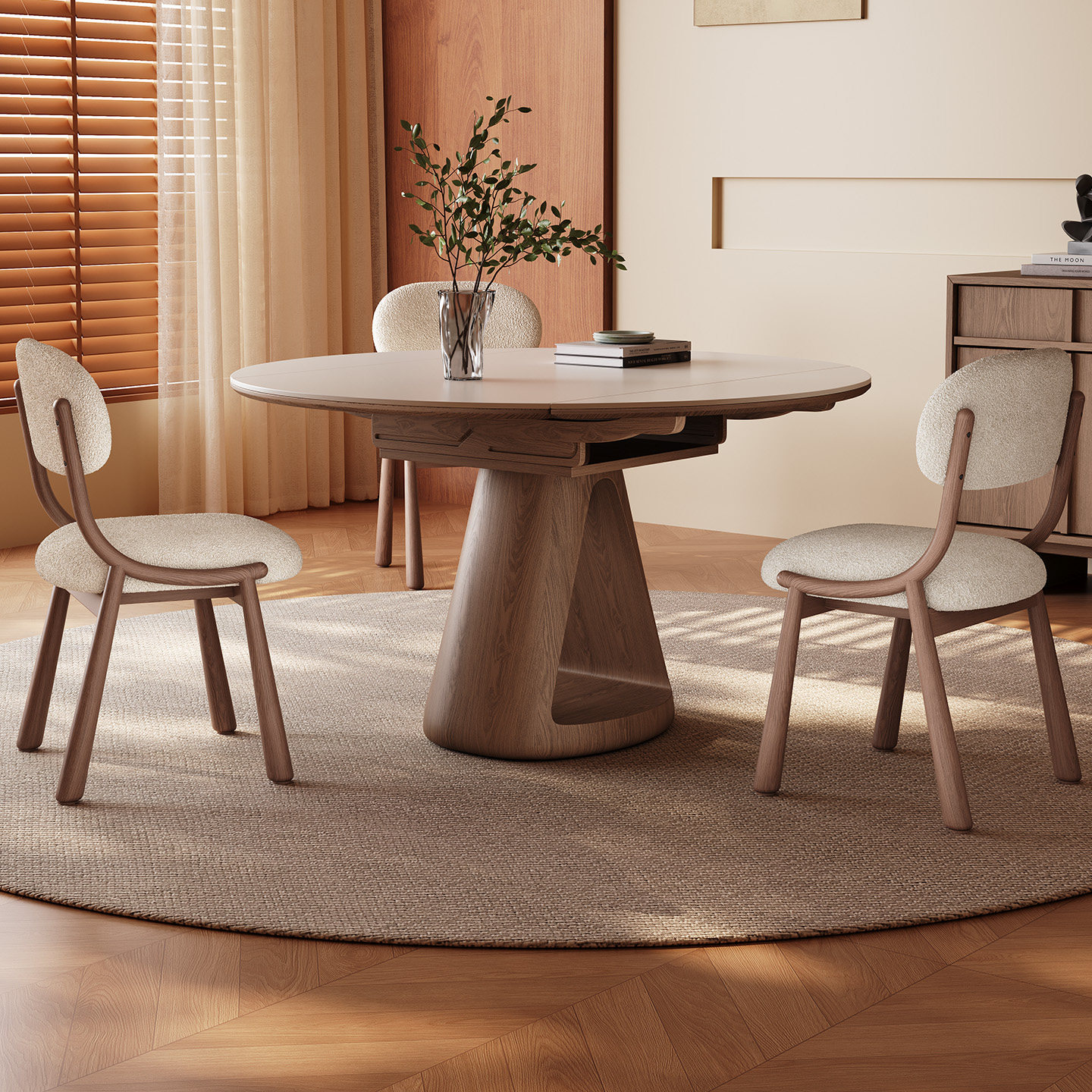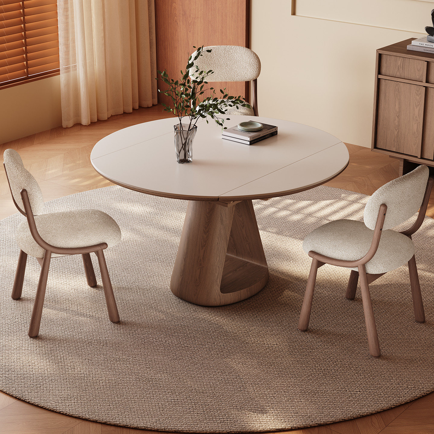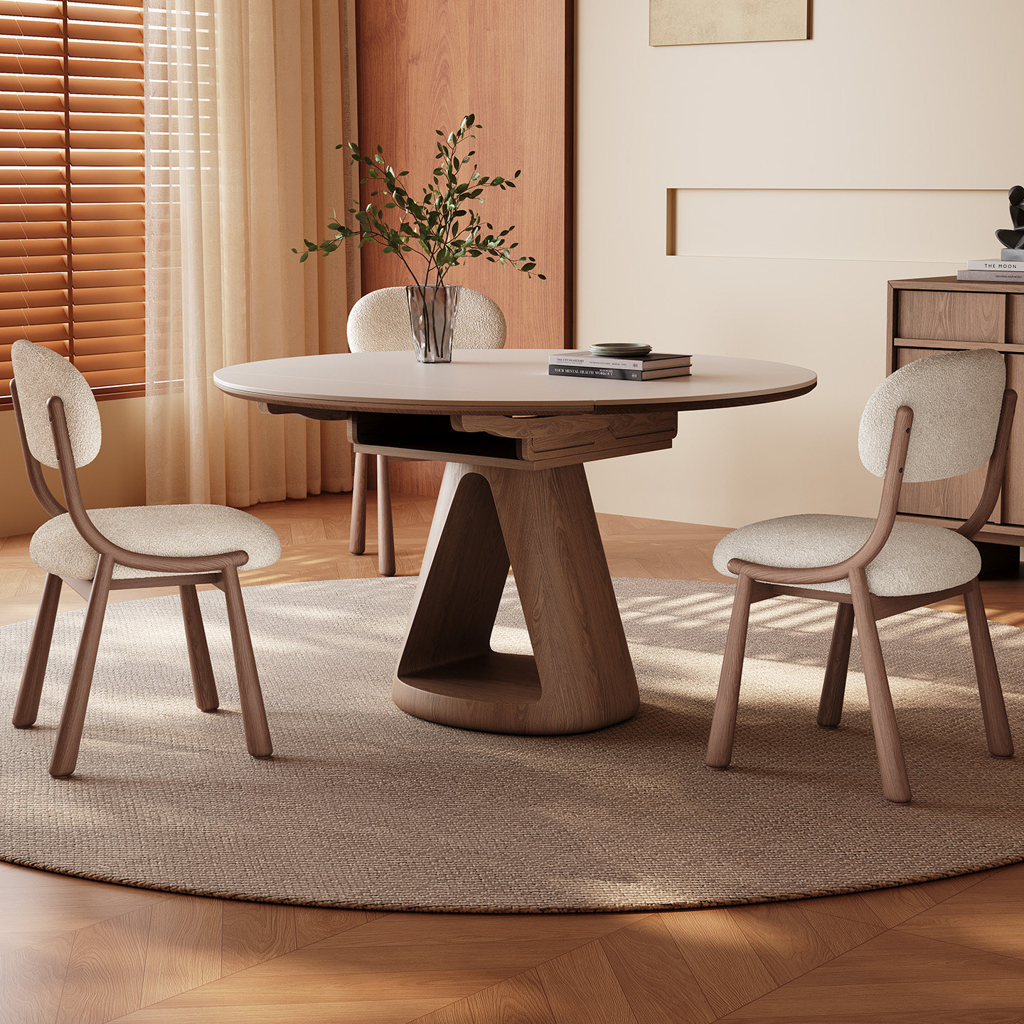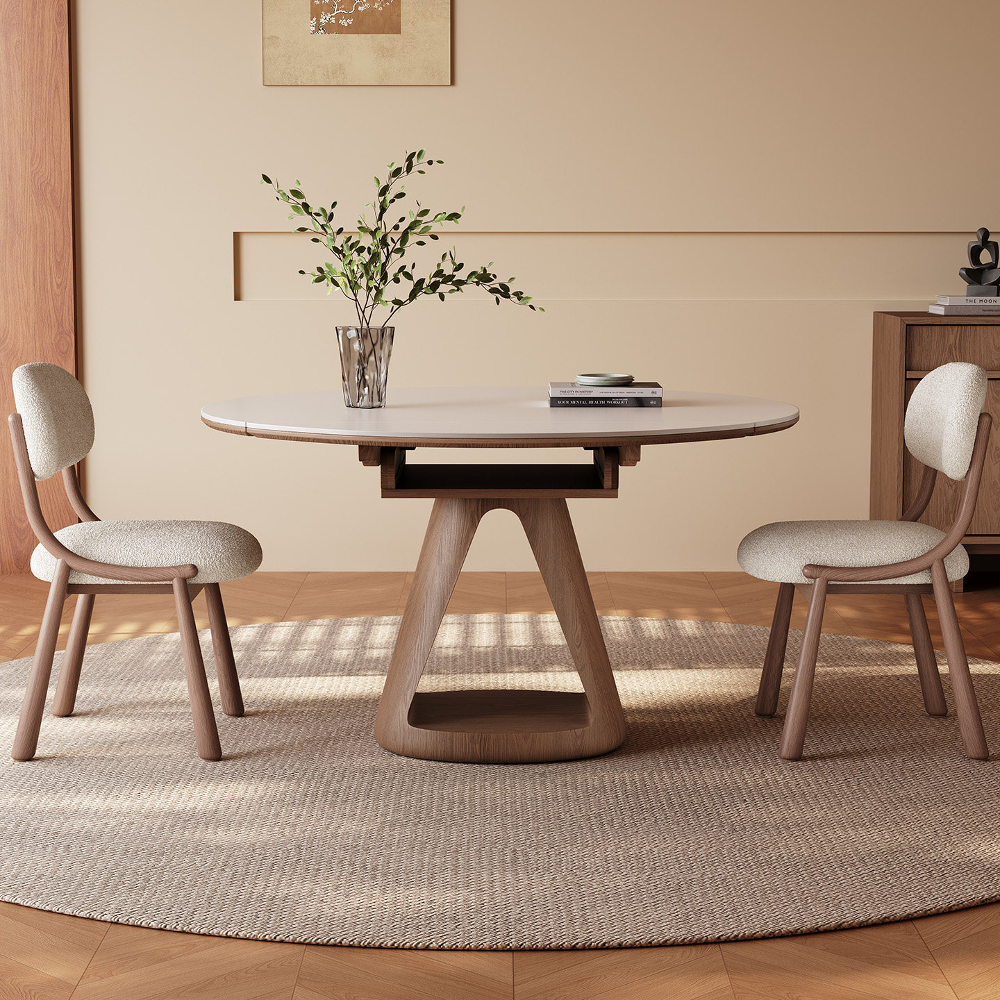 伸缩餐桌圆形2025新款家用小户型轻奢现代简约胡桃色实木岩板餐桌
