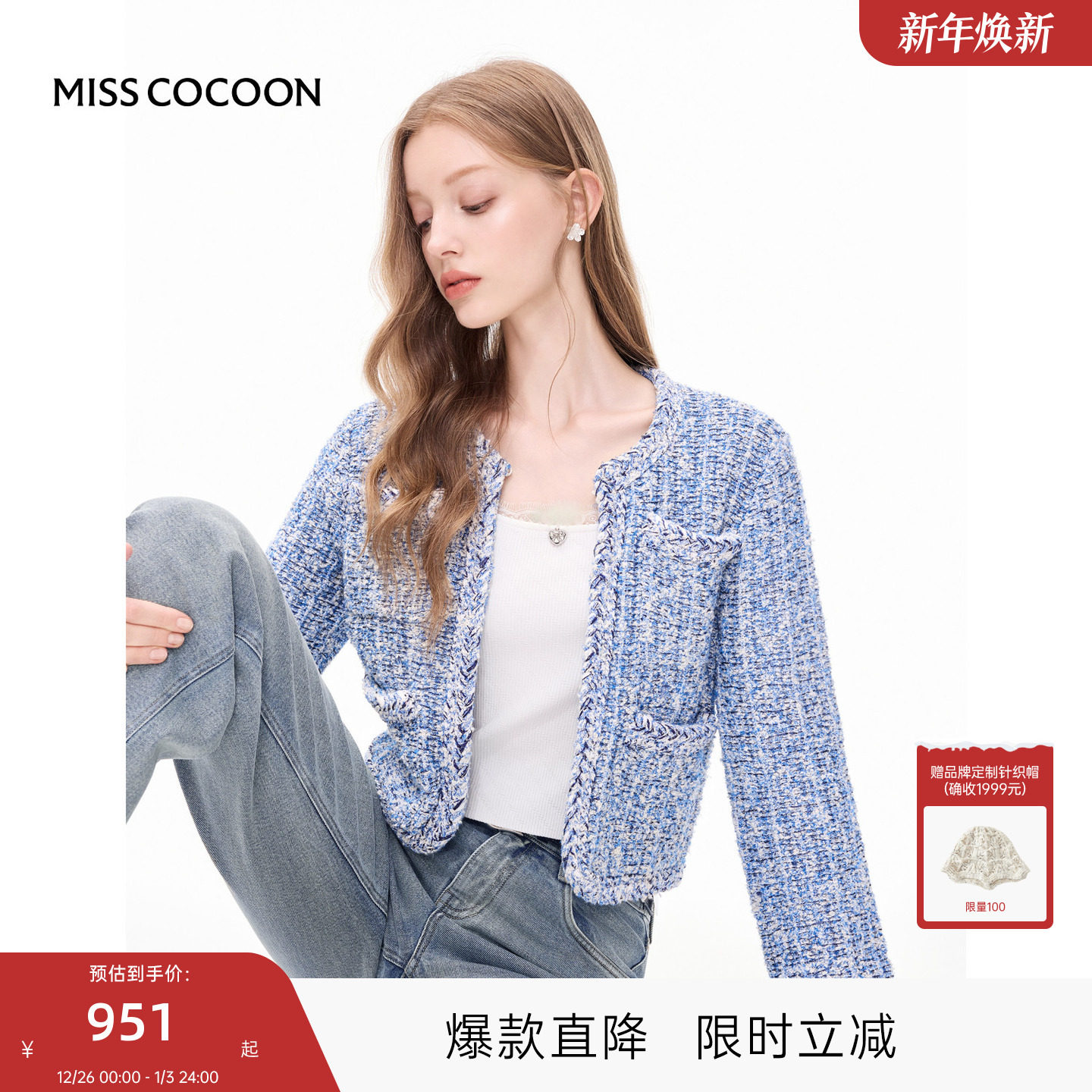 MISSCOCOON可可尼蓝色开衫女2025秋季新款千金小香风针织短外套