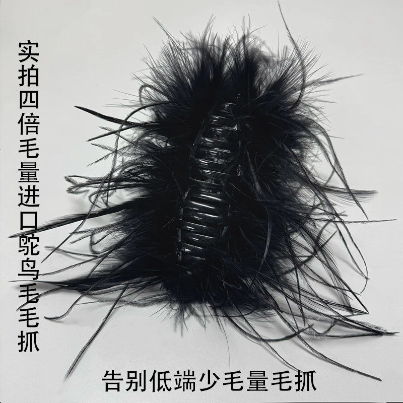 羽毛抓夹鲨鱼夹发夹女后脑勺高级感2026新款大号发量大毛毛头饰冬