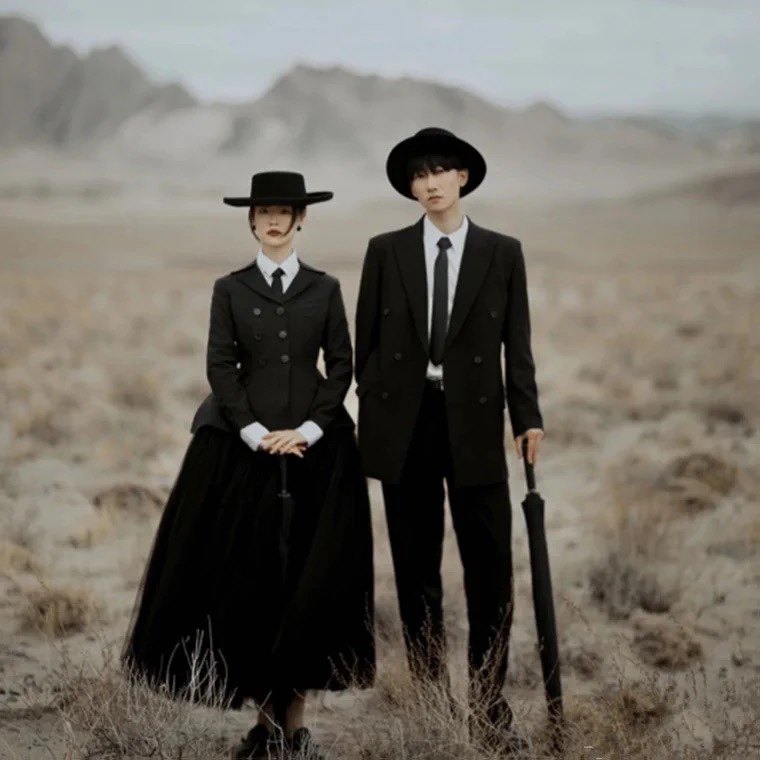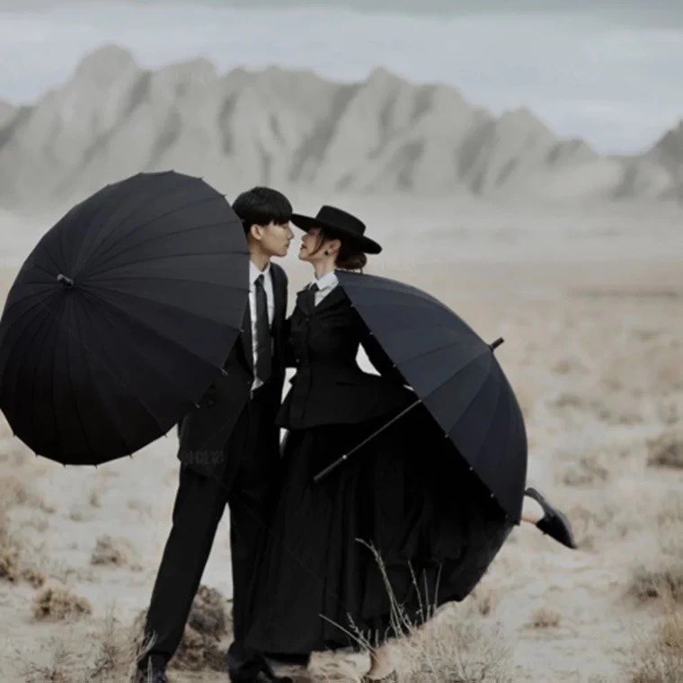 新款街拍摄影大黑伞影楼婚纱写真拍摄道具外景法式复古黑色雨伞