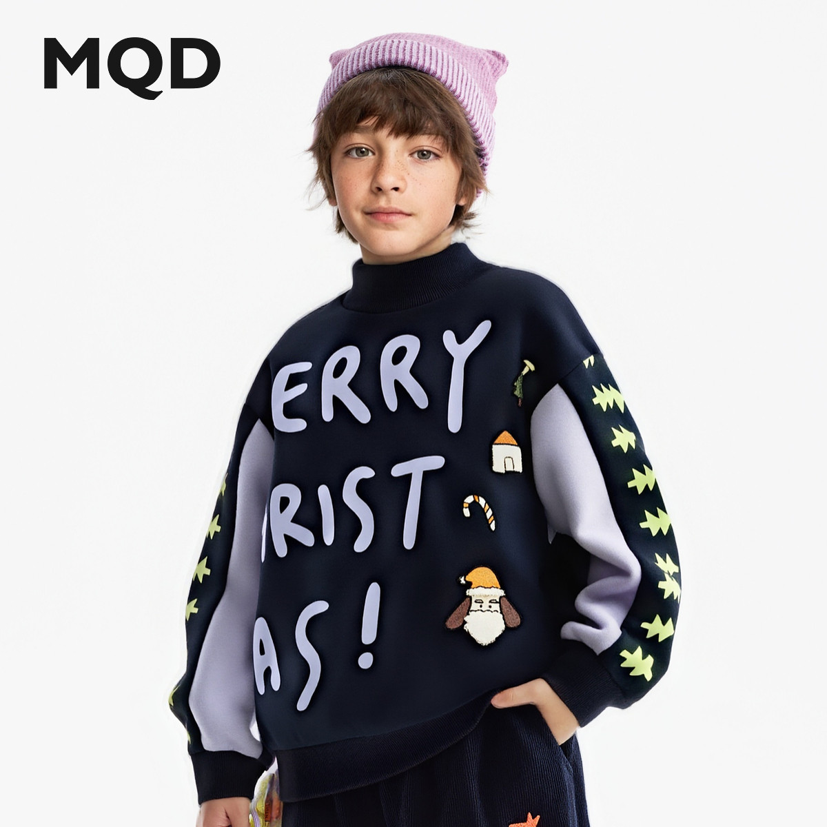 【设计师系列】MQD童装男童加绒卫衣2025冬季新款儿童半高领上衣