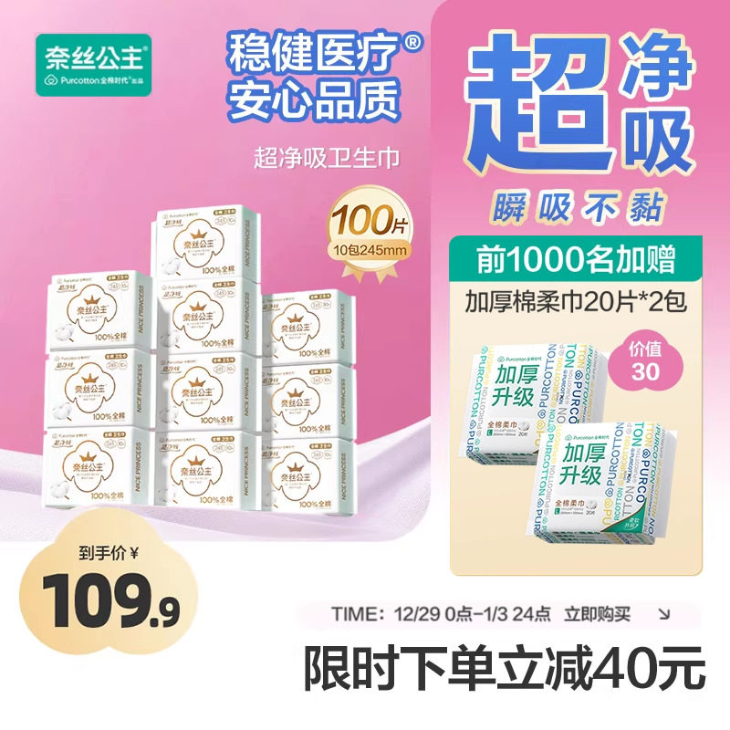 【优于新国标】全棉时代奈丝公主医护级卫生巾日用姨妈巾245mm