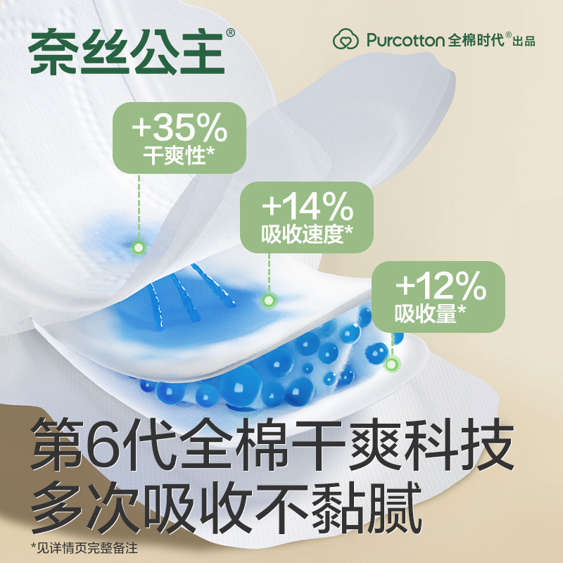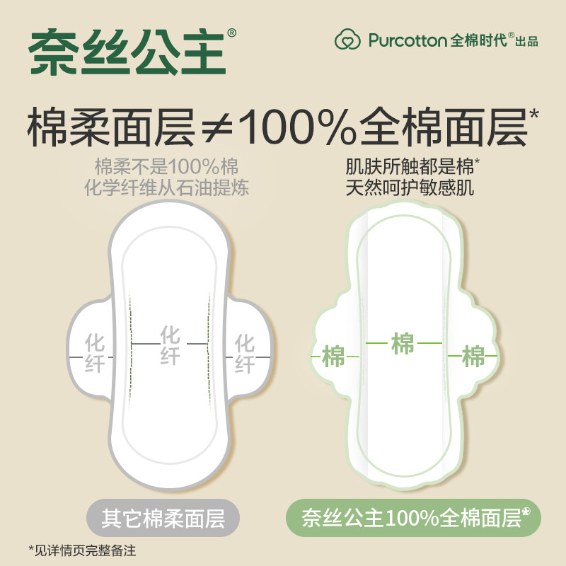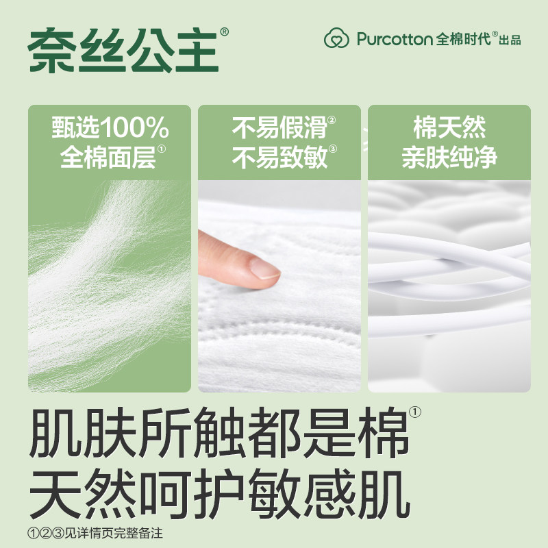 【优于新国标】全棉时代奈丝公主卫生巾女姨妈巾日用纯棉超薄10包