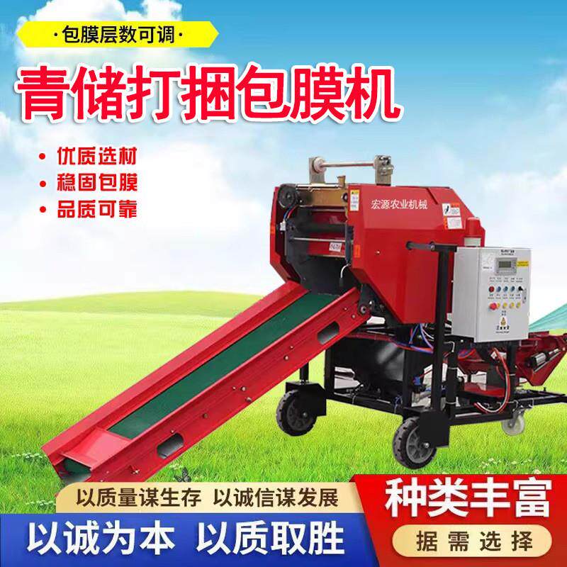 玉米秸秆青储黄储打捆包膜机全自动青储打包机牛羊饲料青贮圆捆机