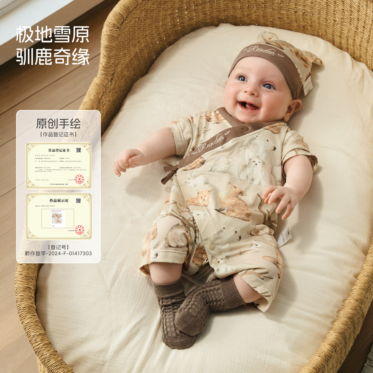 [驯鹿部落]aqpa爱帕新生儿婴儿衣服莫代尔薄款短袖连体衣哈衣外出