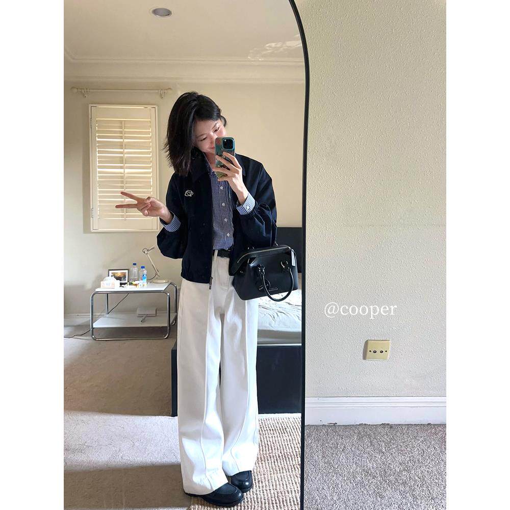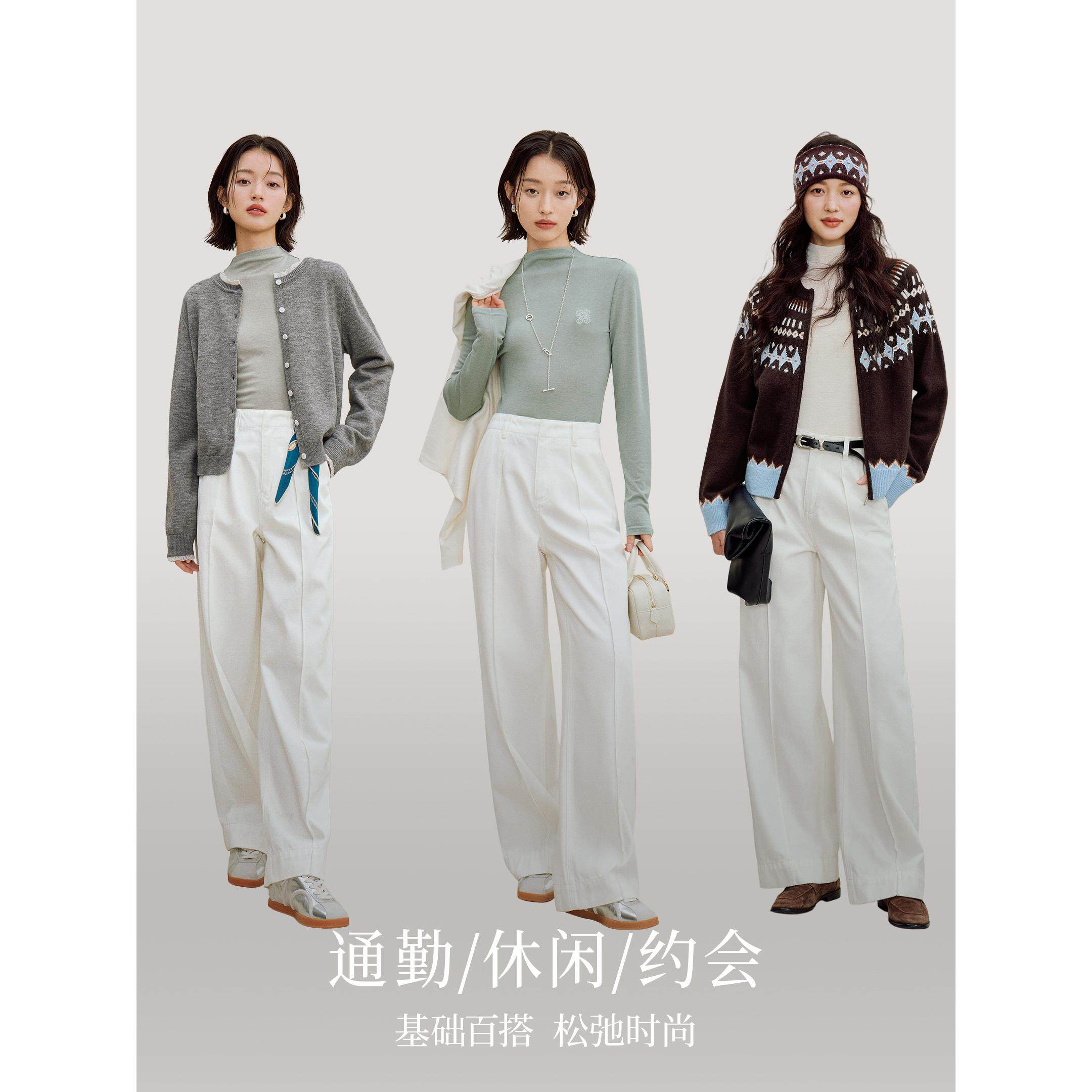 森柔牛仔|森马阔腿牛仔裤女2025秋冬白色牛仔裤简约女士高腰裤子