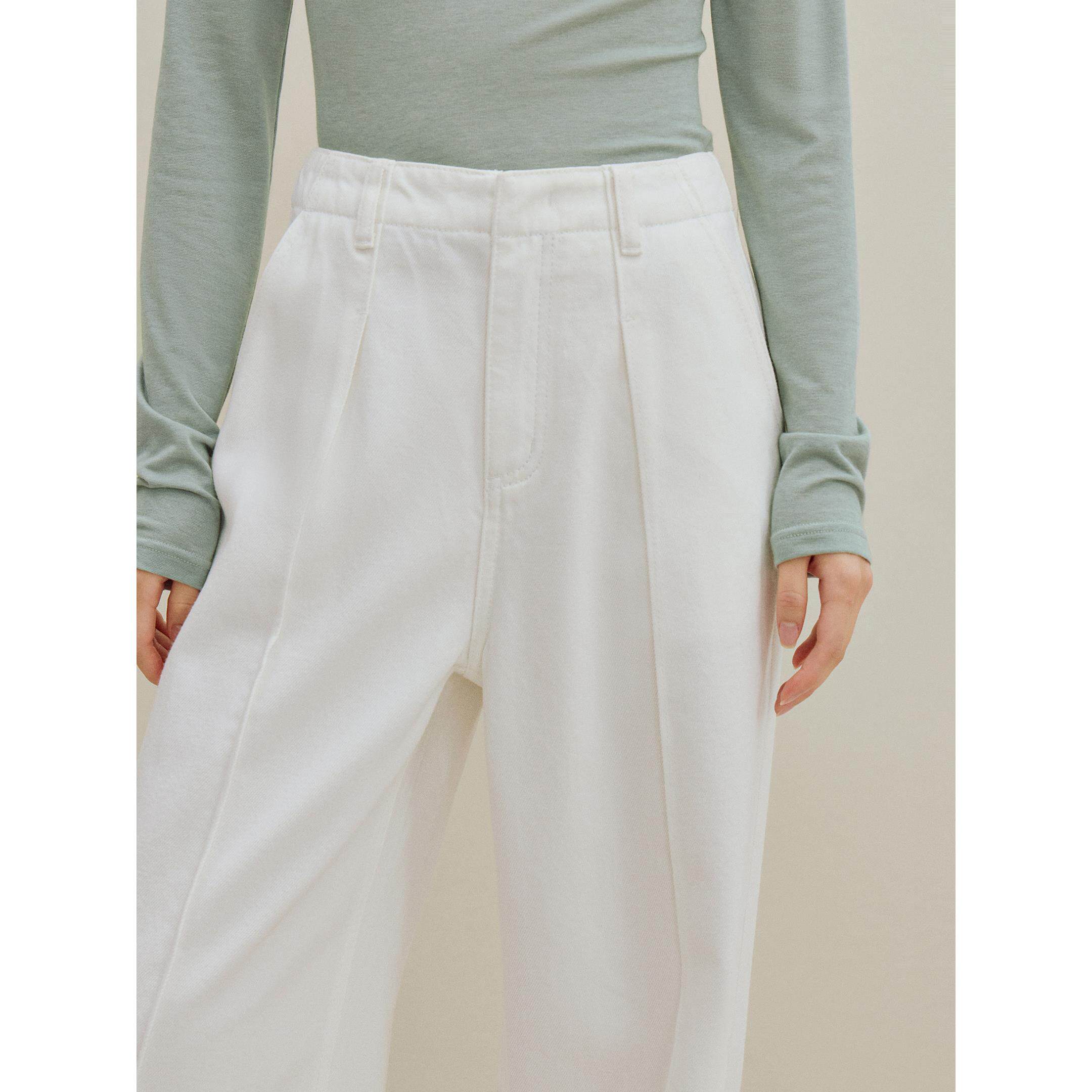 twosweet【用料扎实】白色牛仔裤莱赛尔简约高腰阔腿直筒挺括长裤
