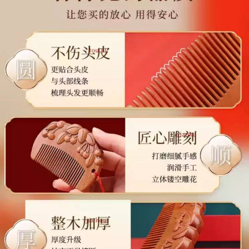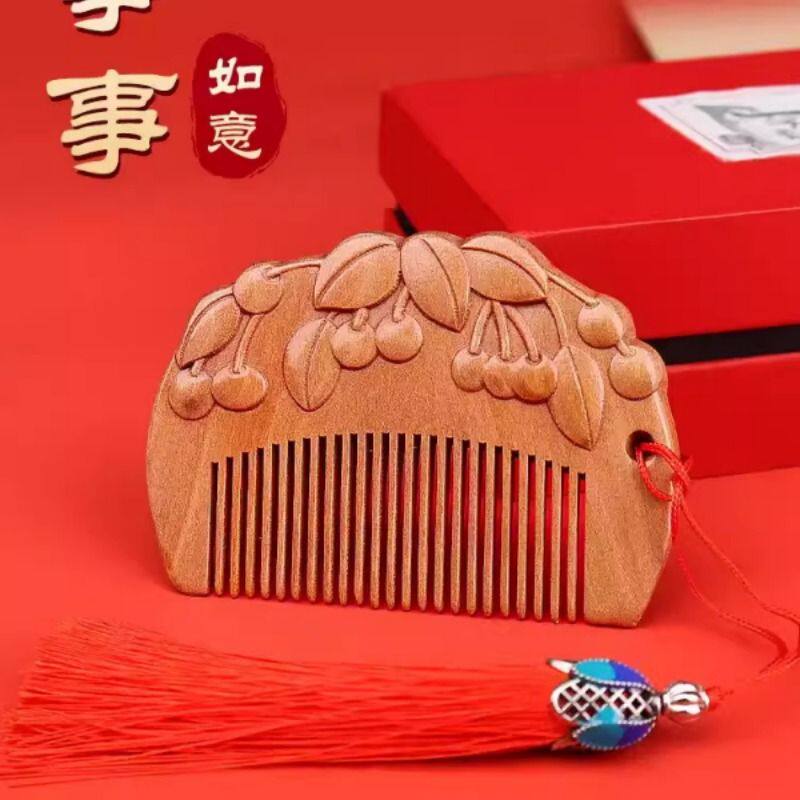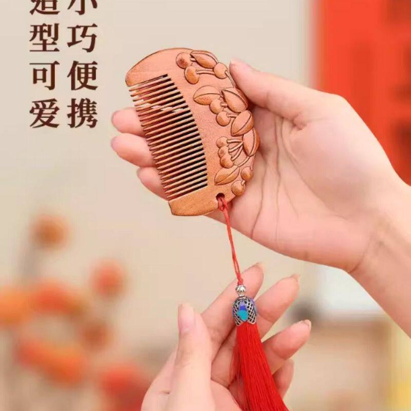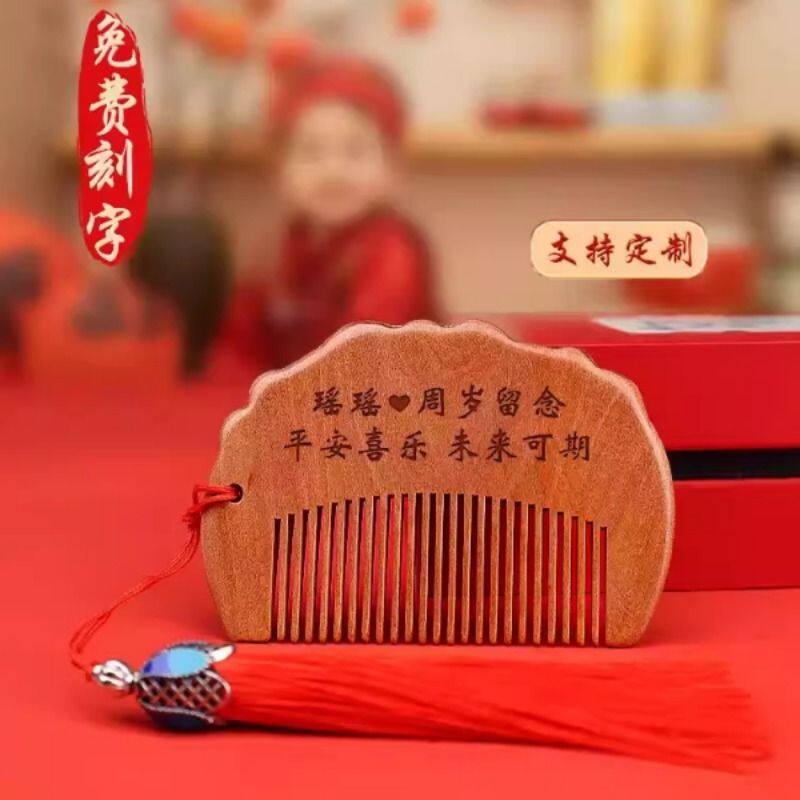 小李子桃木绿檀周岁梳子龙宝宝婴儿宝宝抓周木梳便携好蕴意送礼