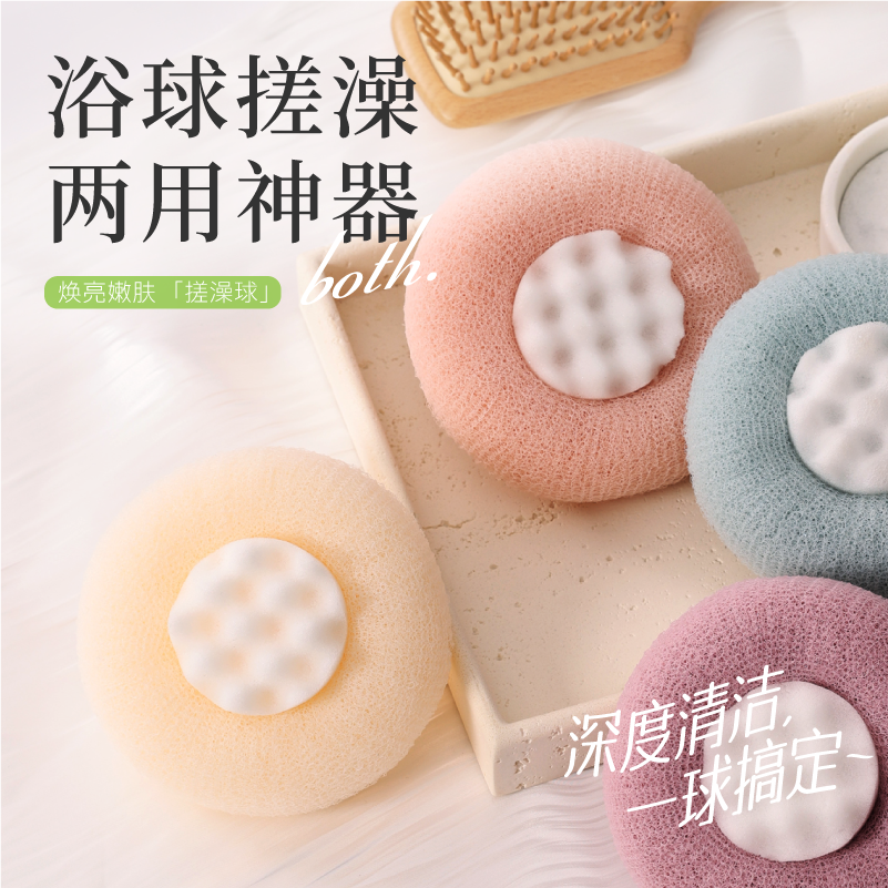 吸盘沐浴球大号不散花球女生高档搓澡海绵球起泡神器两用按摩浴室