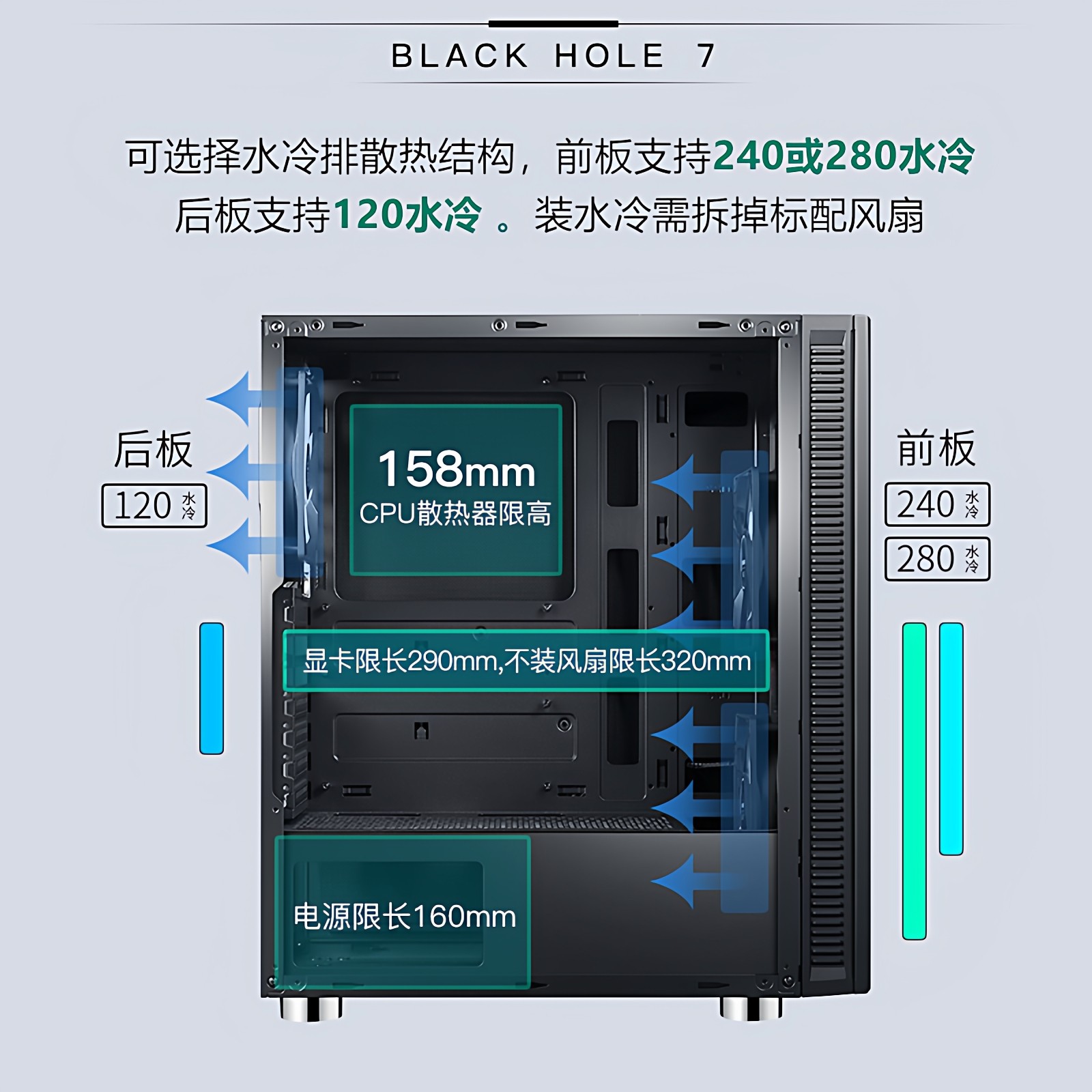 先马黑洞7静音机箱ATX机箱电脑主机箱matx游戏台式机空机箱外壳