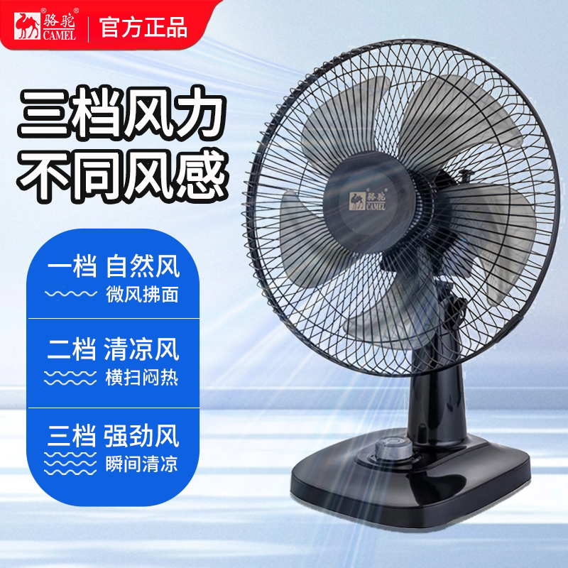 骆驼电风扇家用宿舍大风力台扇办公室桌面低噪静音可摇头台式风扇