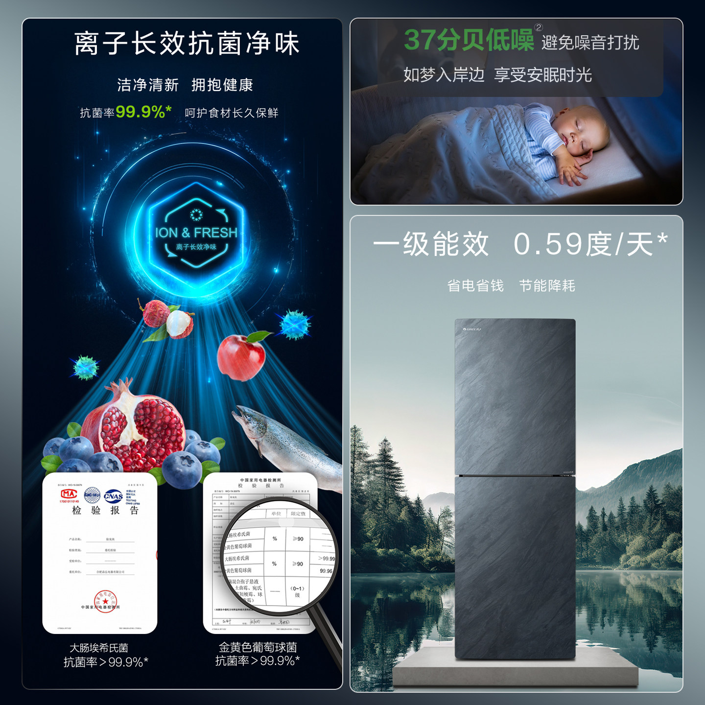 海尔217L风冷无霜变频家用一级能效电冰箱黑金净化出租房小型官方