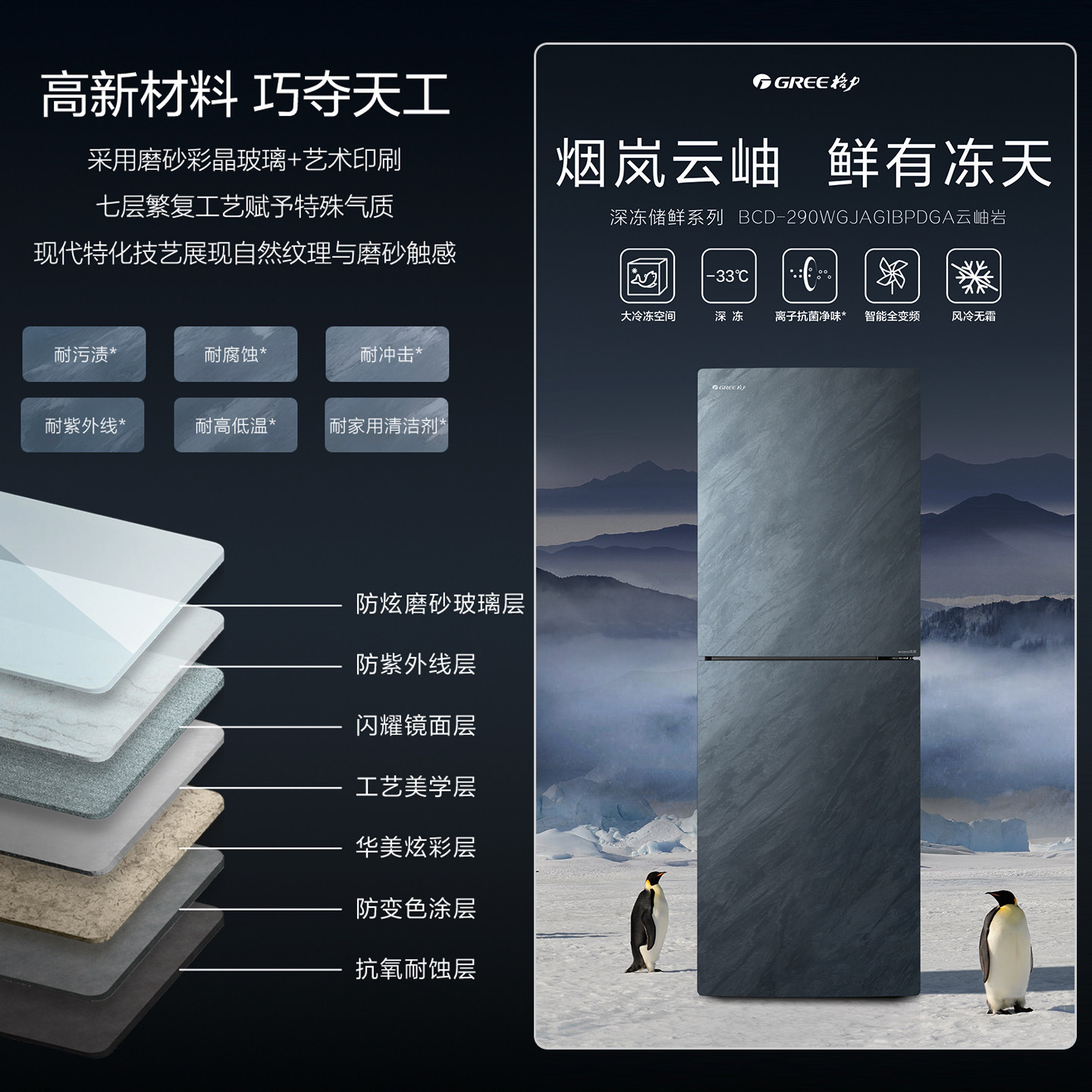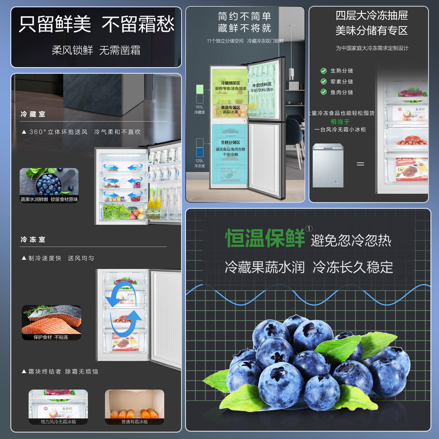 格力双门变频冰箱290升大容量风冷无霜净味抗菌家用一级能效节能