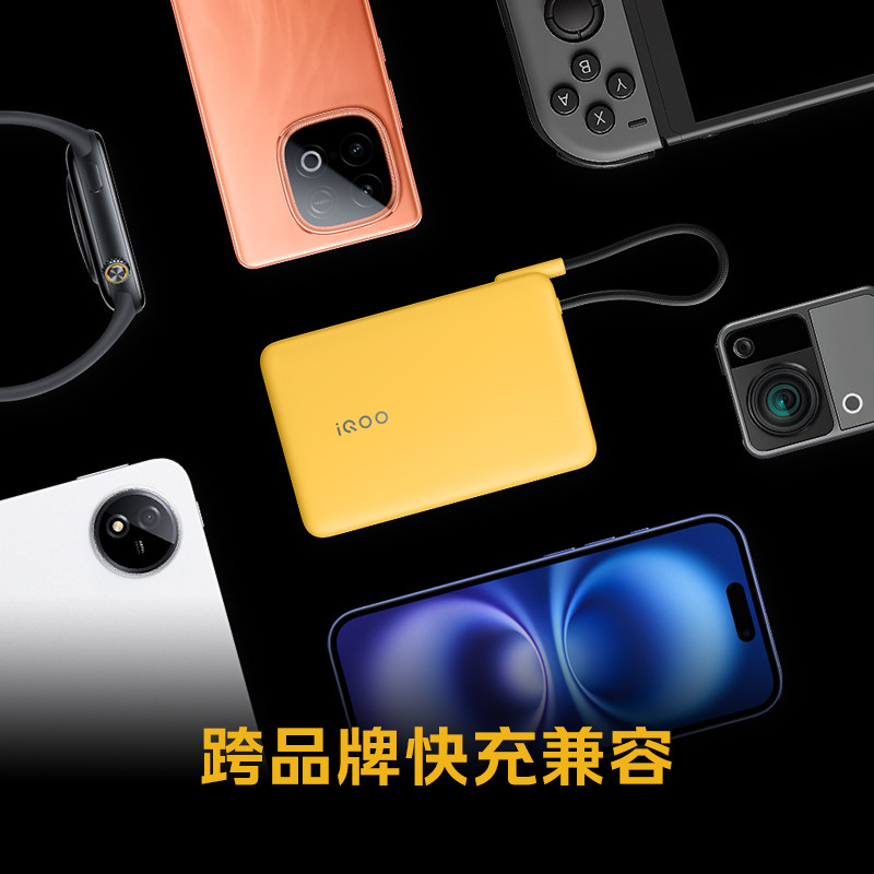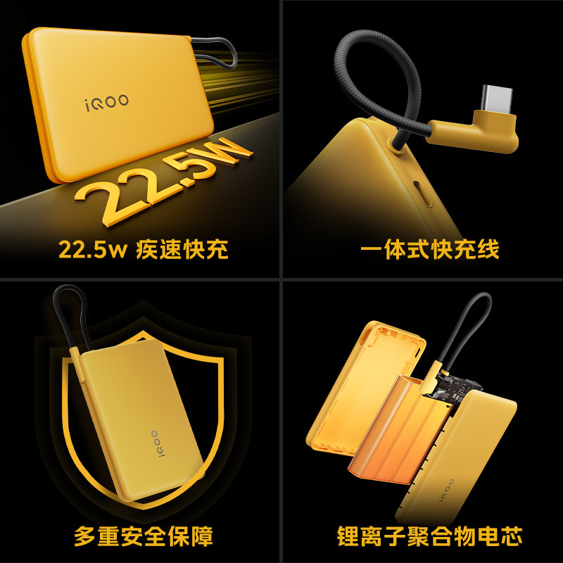 【3C认证】vivo iQOO原装闪充移动电源超轻薄一体式快充线10000mAh毫安充电宝兼容苹果安卓安全可上飞机高铁