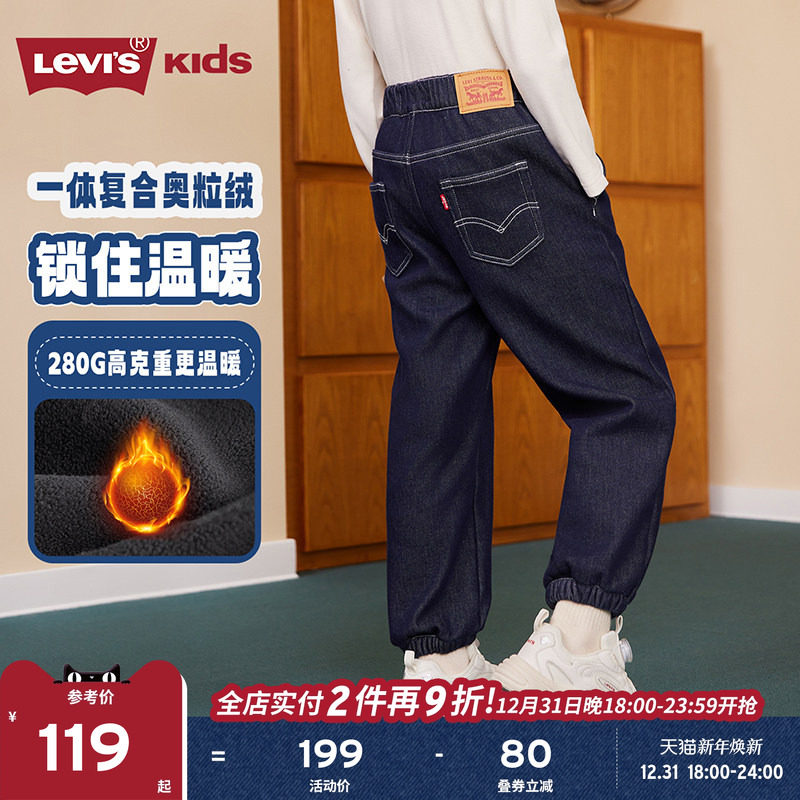 【加绒儿童牛仔裤】李维斯男童裤子保暖加厚春季新款长裤童装女童