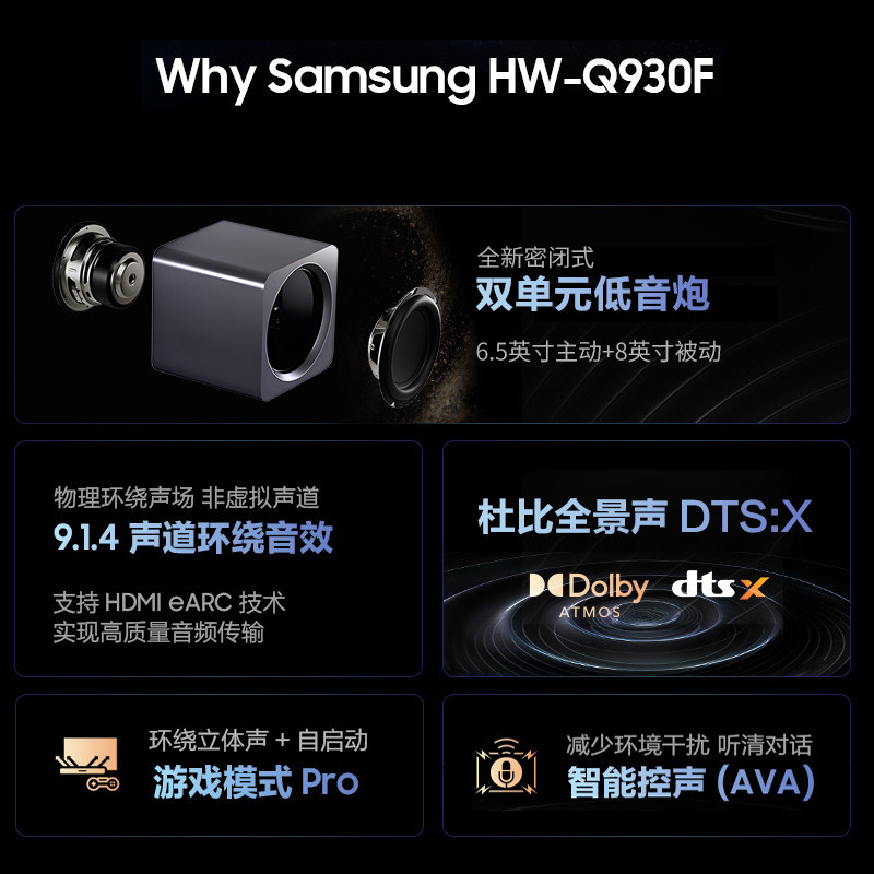 Samsung/三星HW-Q930F回音壁电视音响杜比全景声家庭影院蓝牙音箱