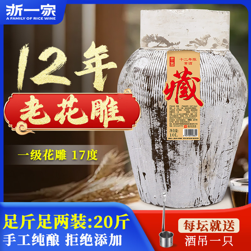 浙一家大坛装花雕黄酒17度自饮纯粮食酒12年陈酿秋冬暖身酒送人礼