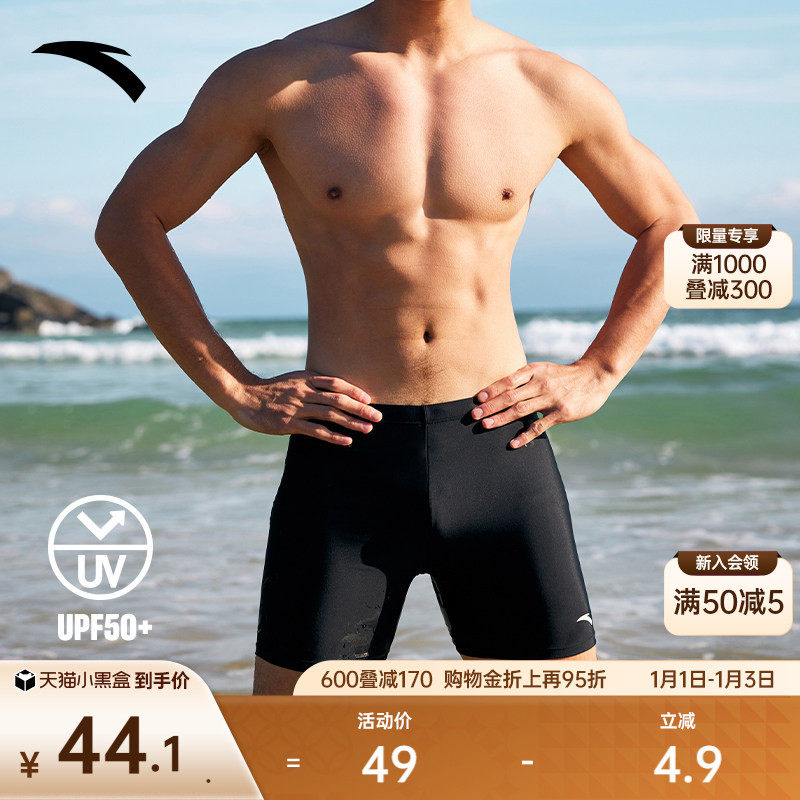 安踏男士泳裤防晒透气黑色高弹力亲肤速干专业游泳短裤官方正品