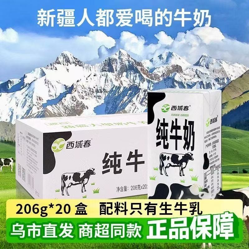 新疆牧场西域春纯牛奶整箱206克*20盒儿童学生营养早餐生牛乳全脂