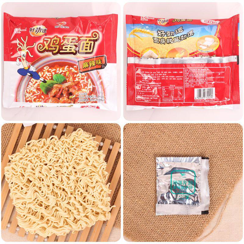 统一好劲道鸡蛋面麻辣味方便面干脆面干吃面批发小零食袋装整箱