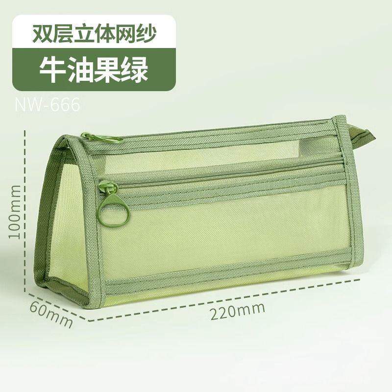 双层立体透明网纱笔袋考试专用新款大容量文具袋初中女生简约文具薄荷绿收纳可视实用