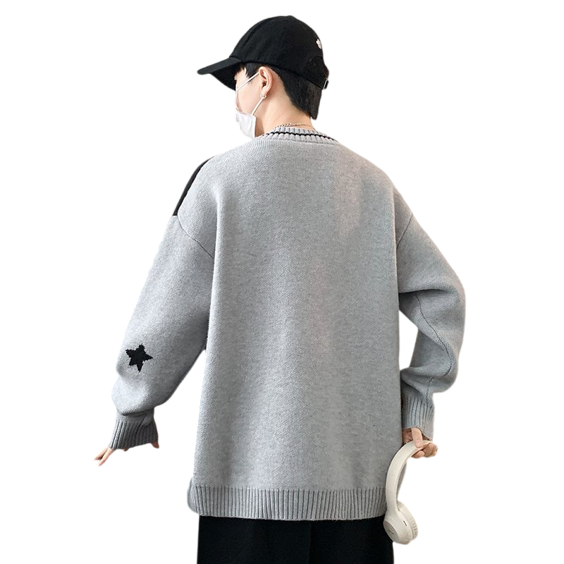 森马毛衫男冬季满版提花针织衫撞色毛衣宽松套头衫百搭提花潮-TK