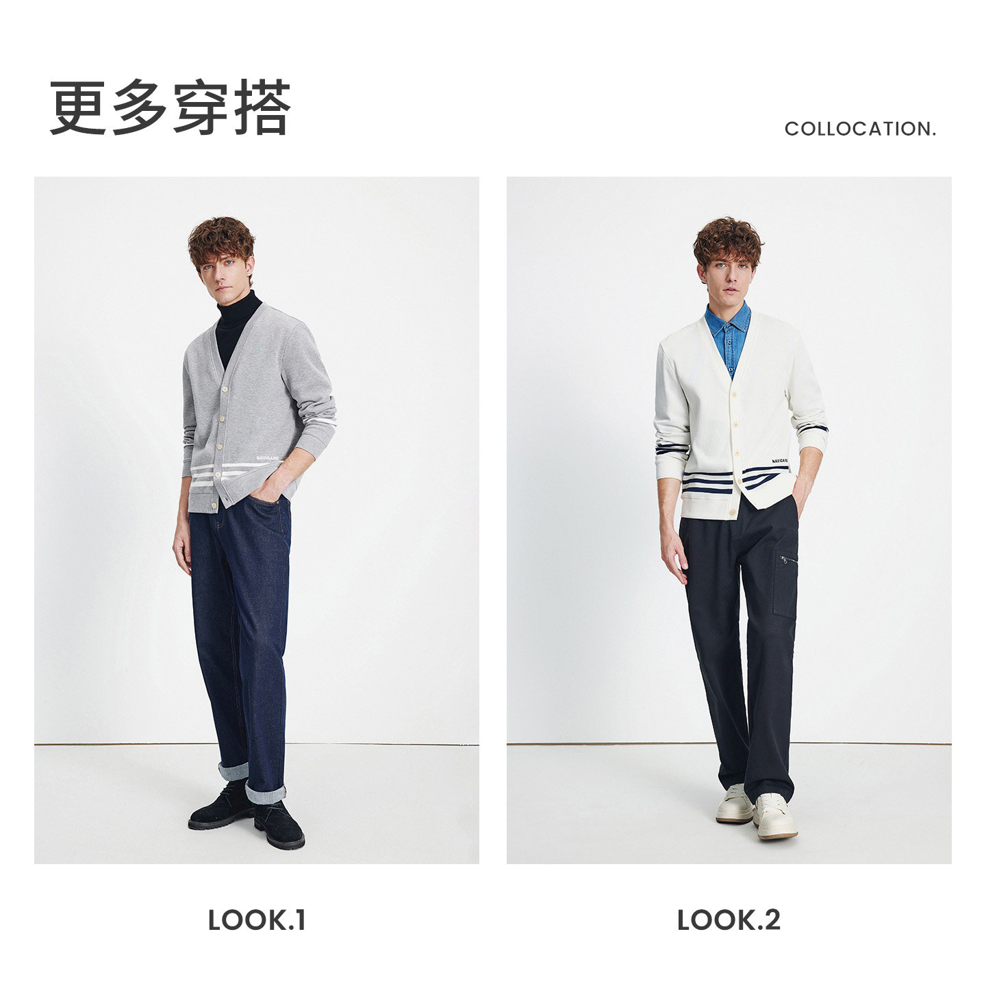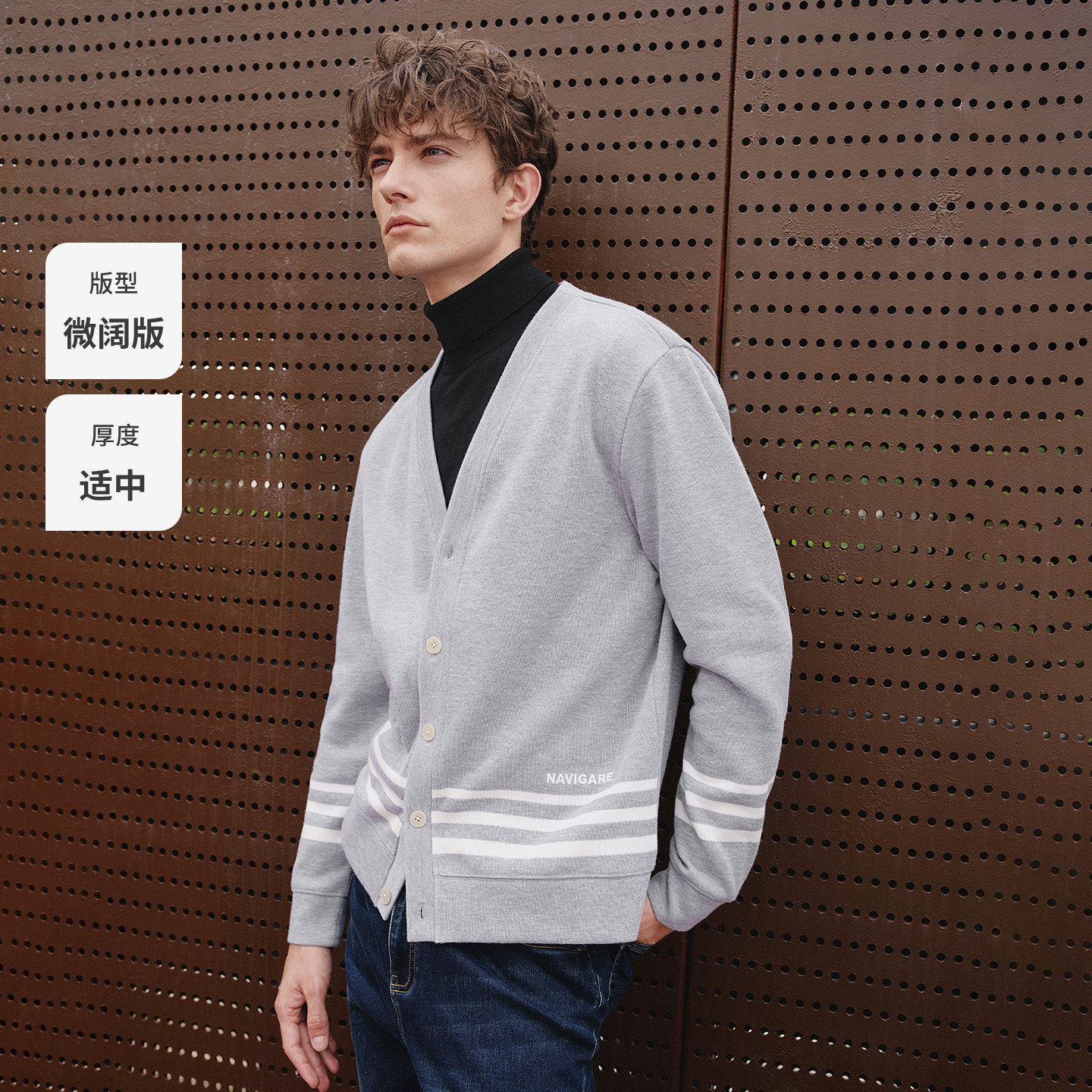 Navigare意大利小帆船针织衫外套男V领开衫春秋季新款休闲毛衣