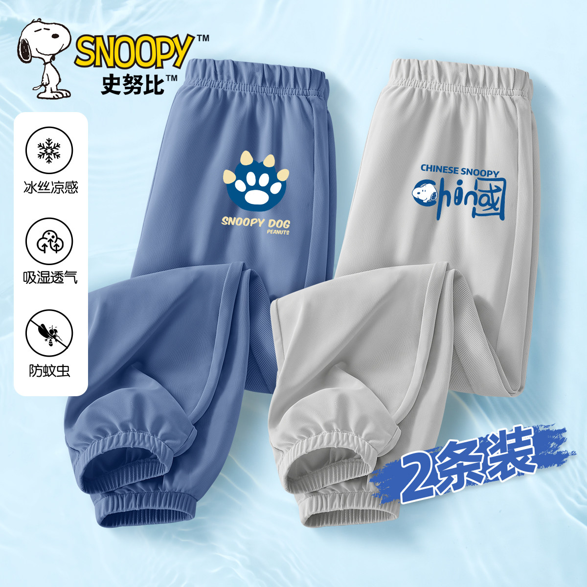 史努比童装男童防蚊裤2024新款夏季薄款裤子冰丝夏款长裤儿童夏装