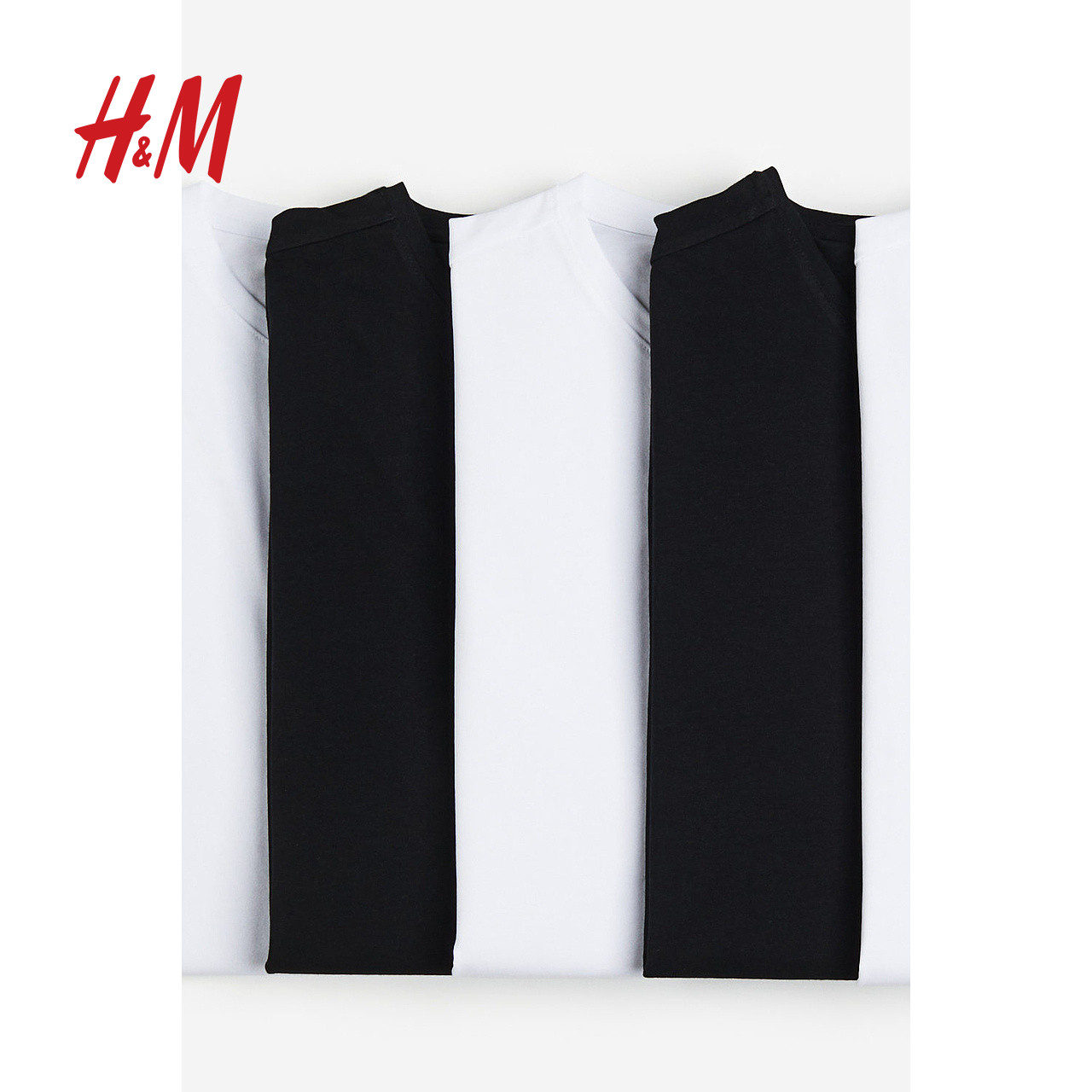 HM男装女装T恤5件装春季装简约正肩圆领潮流情侣打底衫0624684