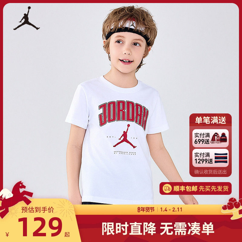 Jordan童装儿童短袖男童运动t恤2025夏季潮酷上衣夏装棉JD2522361