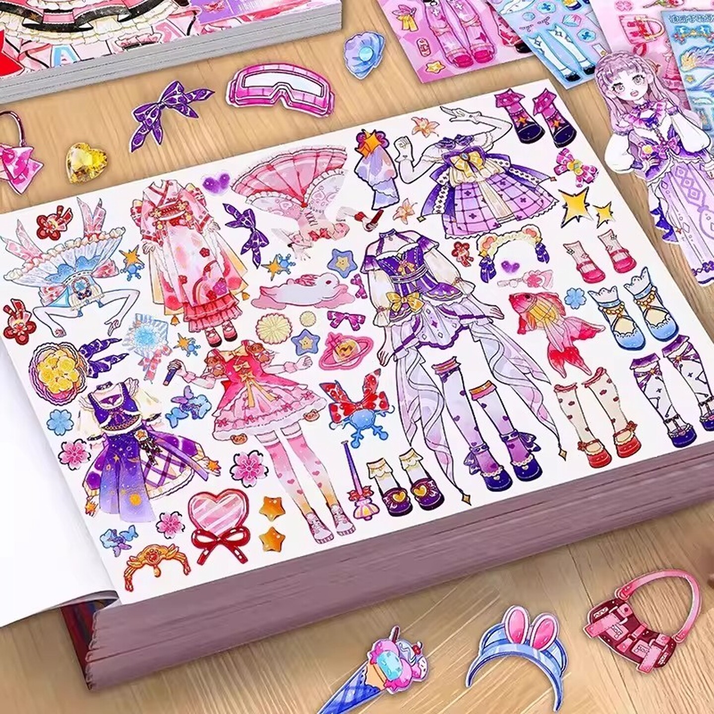 2026新款少女换装贴纸本高颜值儿童安静书贴纸可爱卡通贴贴画美丽公主衣橱贴纸册女孩手工diy手账装饰素材
