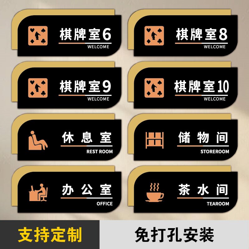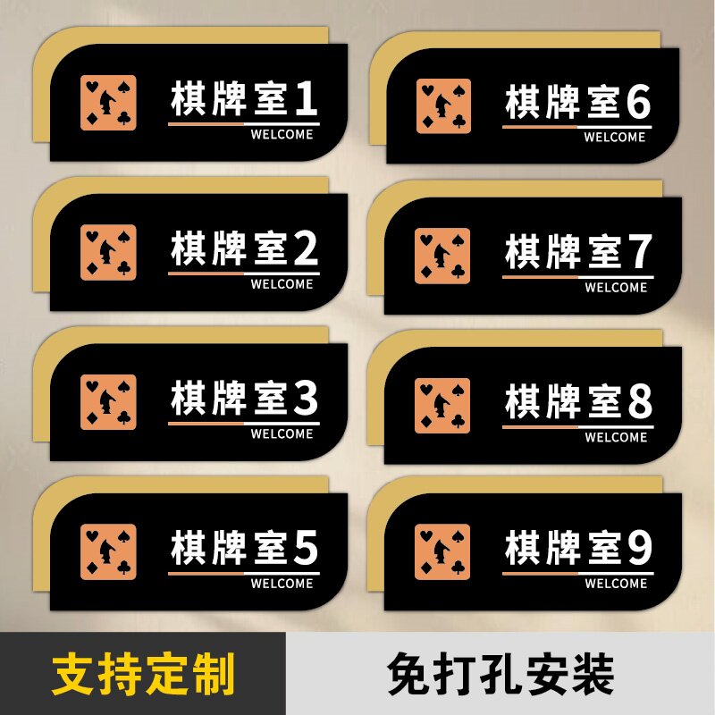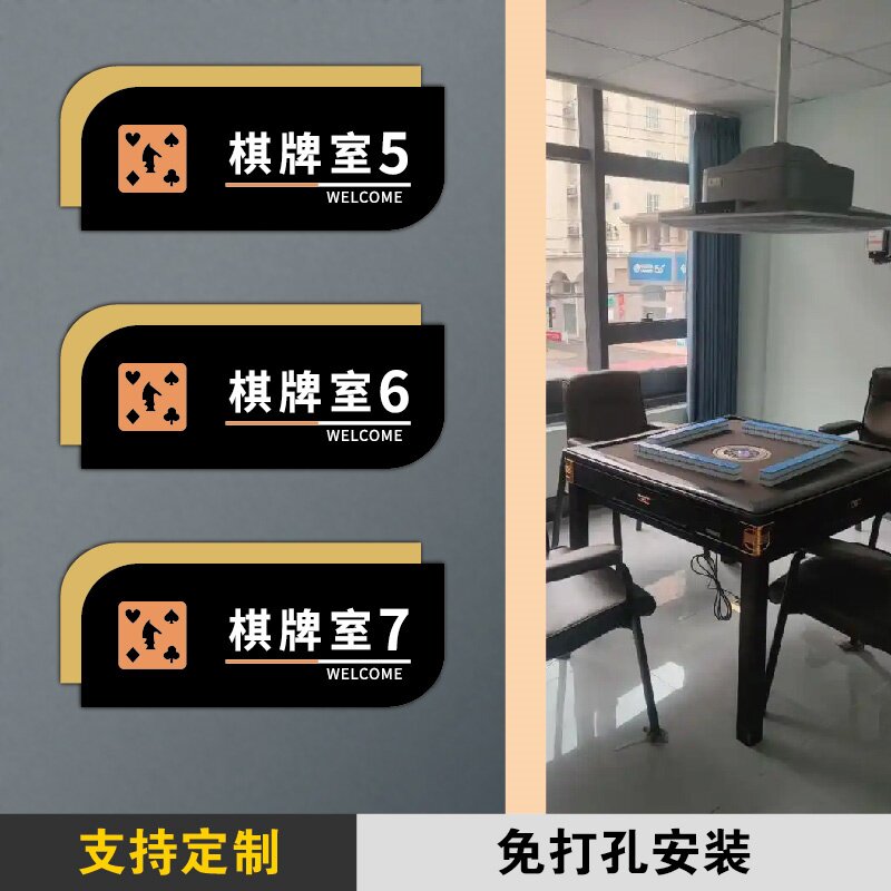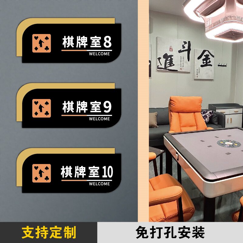 古铜金亚克力定制棋牌室麻将馆包厢门牌台球室桌球包间茶楼雅间门贴标识牌新中式创意房间号贵宾室VIP提示牌