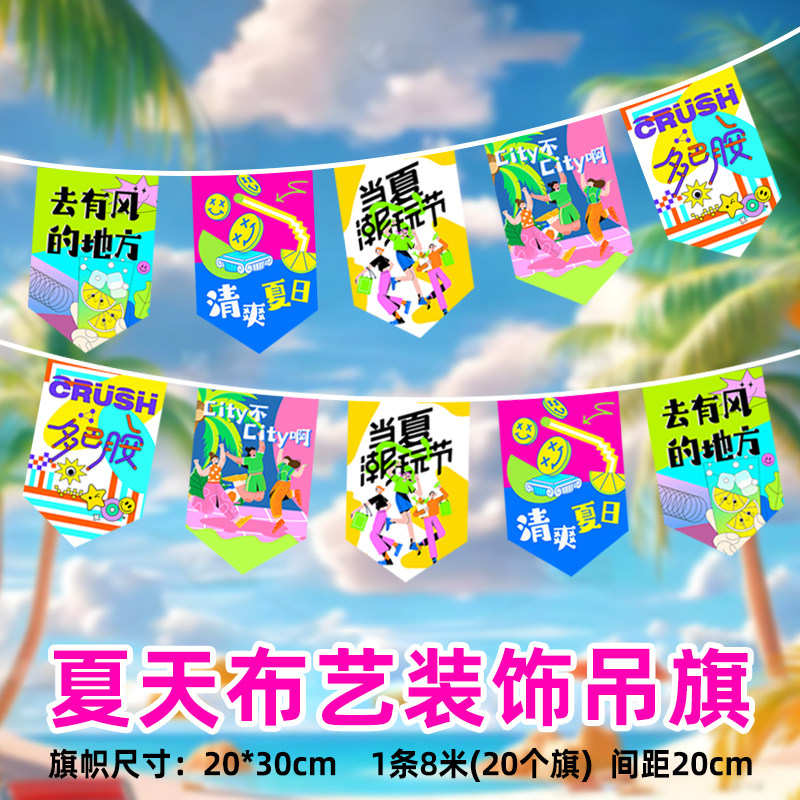 露营地装饰拉旗春夏天集夜市户外布艺吊旗新款个性烧烤串旗火锅墙壁氛围挂旗网红餐厅超市装饰扮用品清新定制