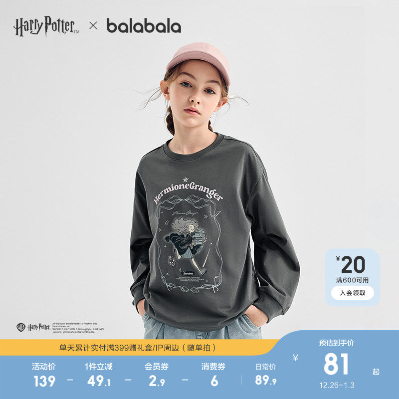 【哈利波特IP商场同款】巴拉巴拉童装女童长袖t恤儿童2025新款秋