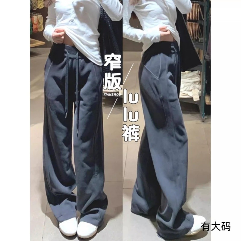 灰色窄版运动卫裤女秋季2025新款加绒高腰显瘦休闲直筒阔腿裤大码