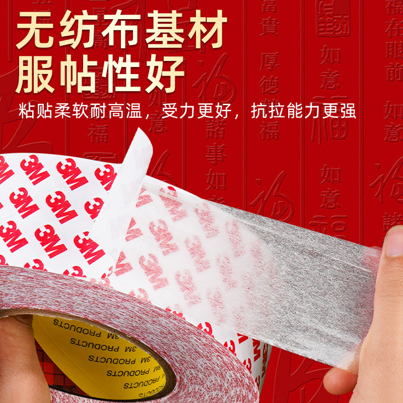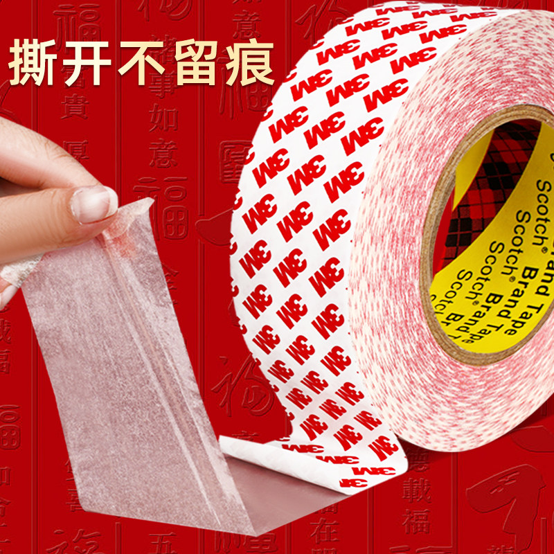3M对联专用强力无痕双面胶新年装饰门窗高粘度易撕不留痕不留胶粘贴春联喜字福字年画窗花插排海报半透明胶带