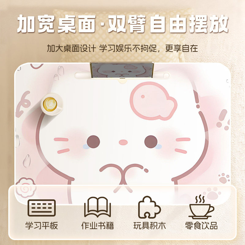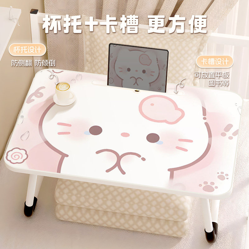 粉红猫咪床上小桌子可折叠书桌卧室学习写作业儿童卡通小桌板宿舍飘窗可移动笔记本电脑桌平板阅读支架写字台