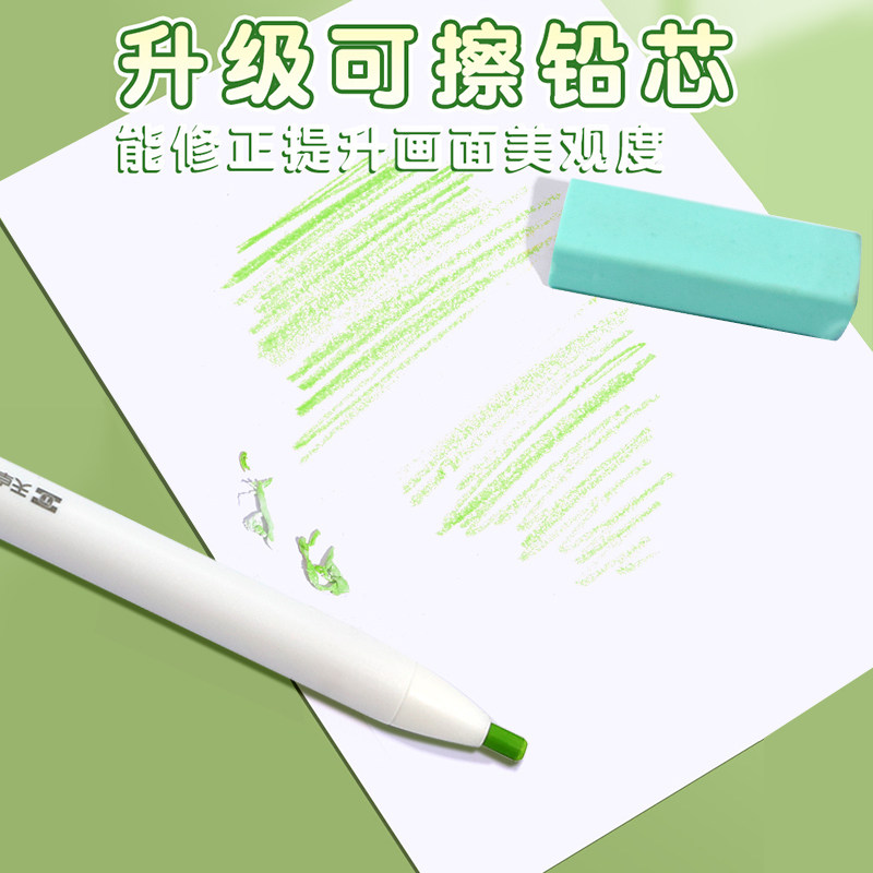 按动可擦彩铅免削12色36色24色36色可换芯彩色自动铅笔油性彩铅儿童画画学生美术笔可擦画笔儿童幼儿园绘画笔