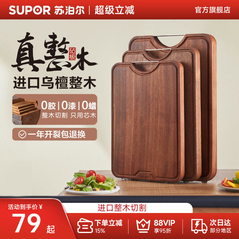 苏泊尔乌檀木切菜板擀面板和面砧板家用案板粘板厨房水果砧板