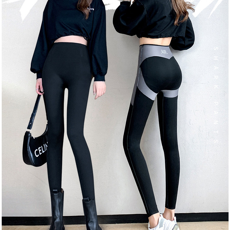 楷兰纯春秋薄款鲨鱼裤女外穿春秋芭比无痕瑜伽高腰紧身黑色打底裤