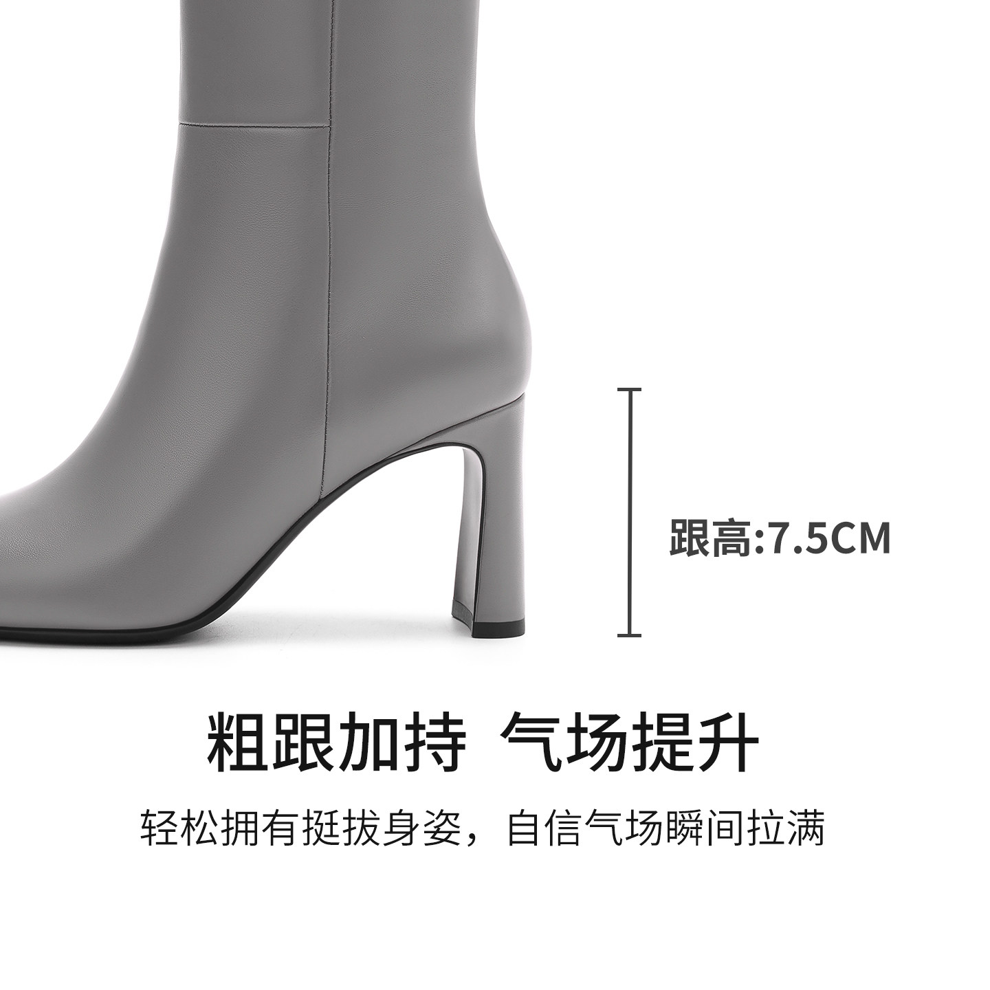真皮~骄屿增高8CM辣妹裤管靴女2025秋冬新款长筒靴松糕厚底骑士靴